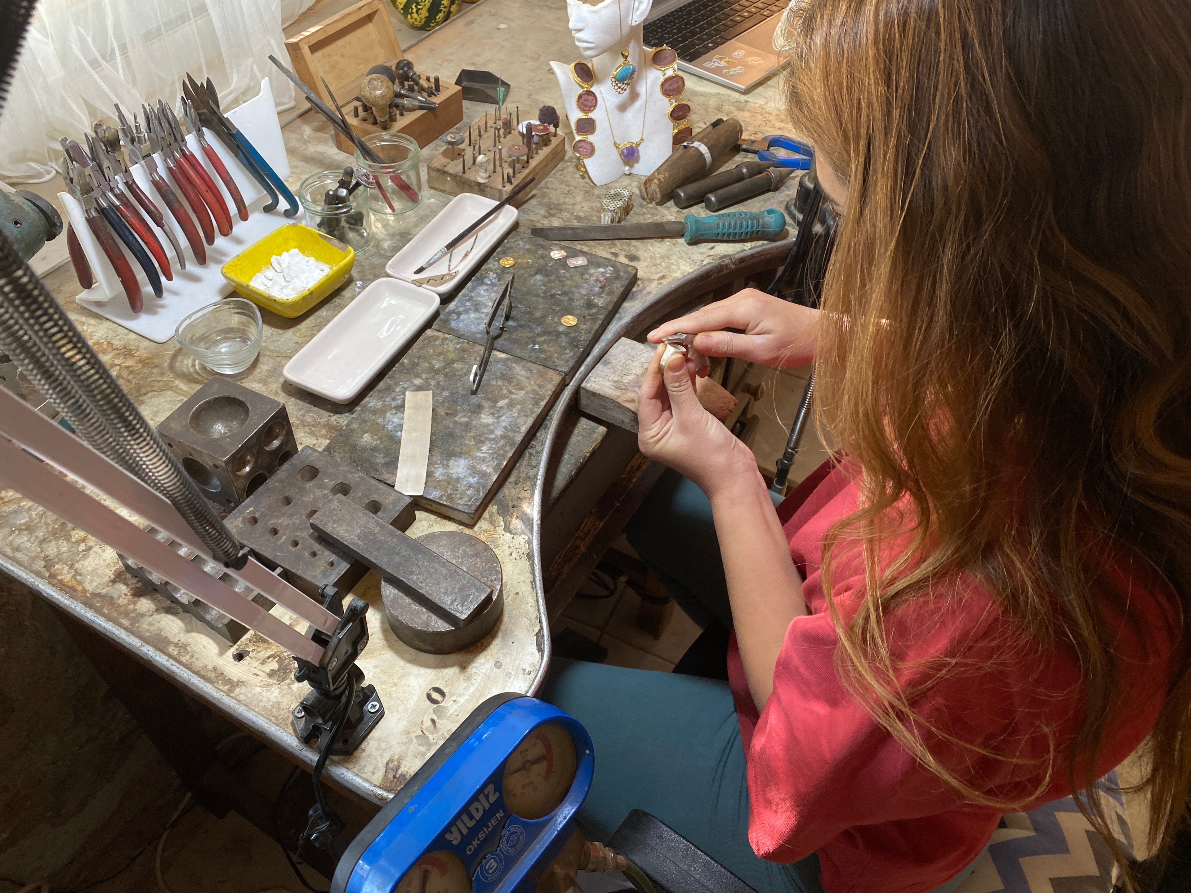 Atelier Sultan'a hoş geldiniz; burada her parça bir sevgi emeğidir. Bodrum'da eğitim almış bir mücevher tasarımcısı olarak, doğayla çevrili atölyemde 925 ayar gümüş ve altın kullanarak antik esintili tasarımlar yaratıyorum. Çizimden son cilaya kadar her adım el işçiliğiyle yapılıyor. Seri üretim yok, kestirme yol yok—sadece otantik el işçiliği, anlam taşıyan değerli taşlar ve hikayenizi anlatan mücevherler.